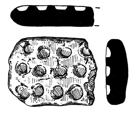 - nález hliněné destičky s atypicky velkým a tvarovaným důlkem