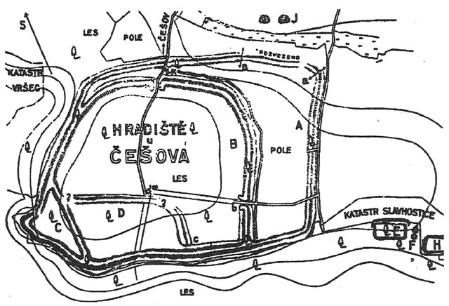 Zdroj: Čtverák, Vl., Lutovský, M., Slabina, M., Smejtek, L.: Encyklopedie hradišť v Čechách